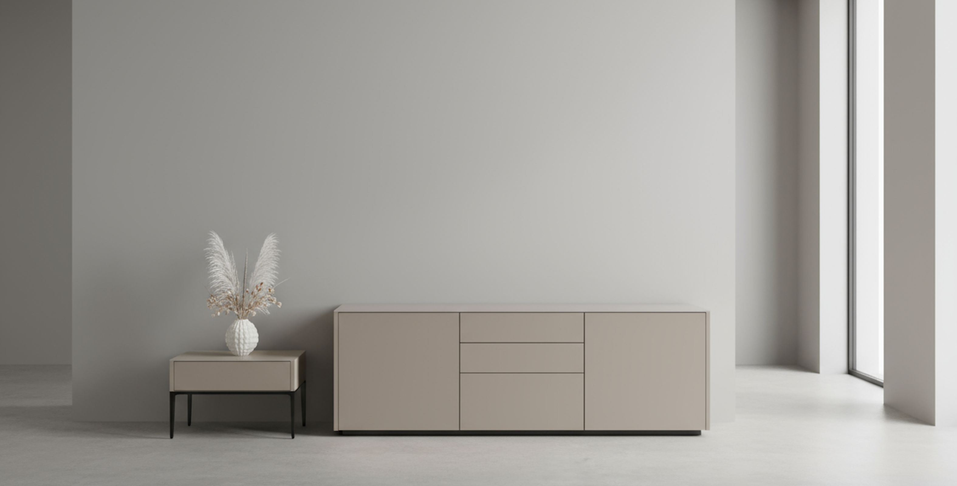 Откройте новые безграничные возможности для интерьера. Соберите комоды, напольные или подвесные тумбы под себя как конструктор: комбинируйте выдвижные ящики, распашные и откидные дверцы, открытые полки. Создайте свою уникальную подвесную композицию или поставьте на стильное металлическое основание либо цоколь. Выберите фасад: тёплый благородный шпон или современное покрытие. Фасады могут быть также выполнены из изящного алюминиевого профиля с безопасным стеклом. Можно дополнить конструкцию декоративными боковыми накладками, доступными в отделках фасадов и столешницей из матового или глянцевого стекла. Ваша идеальная модульная система хранения теперь доступна!