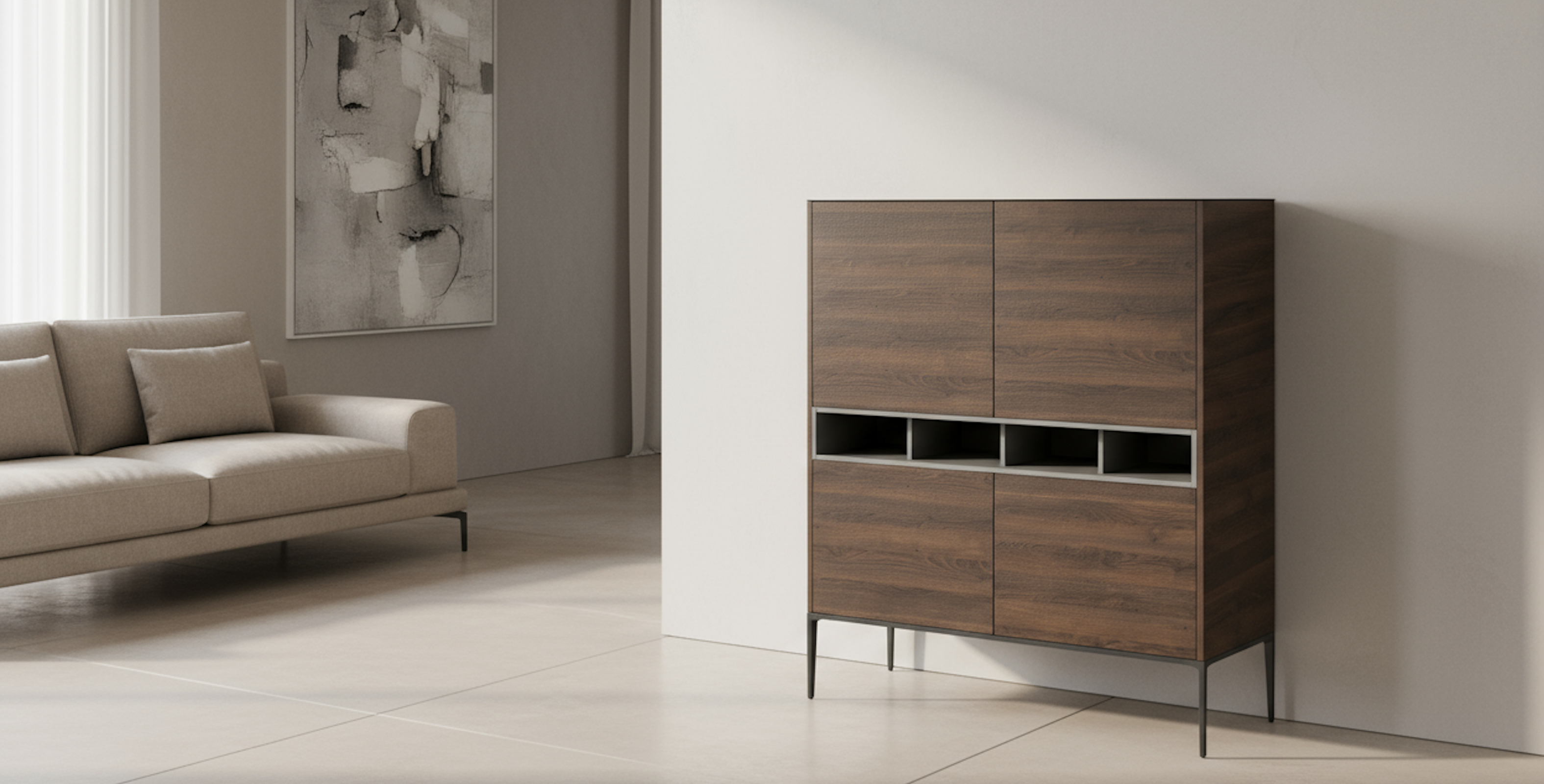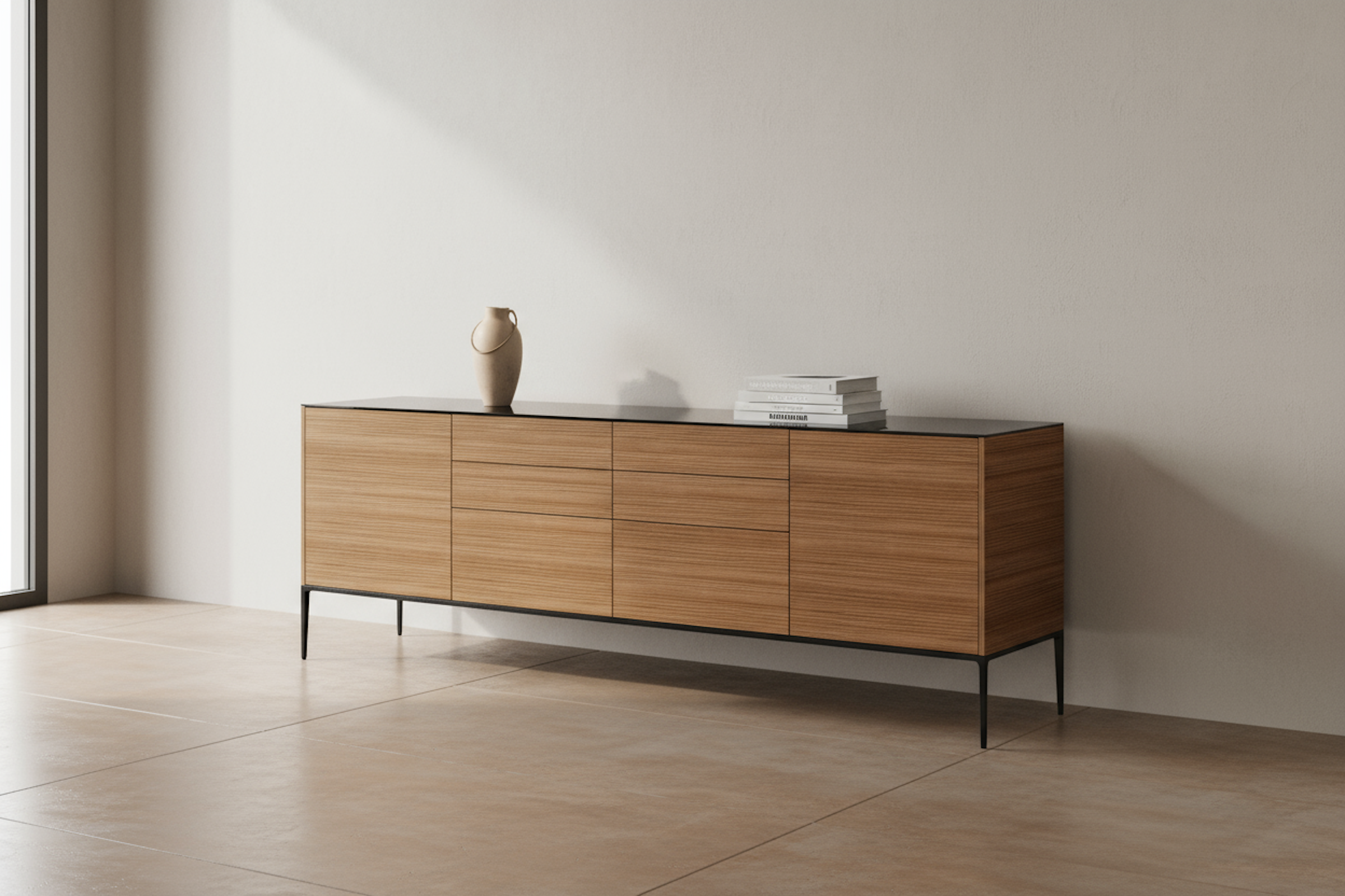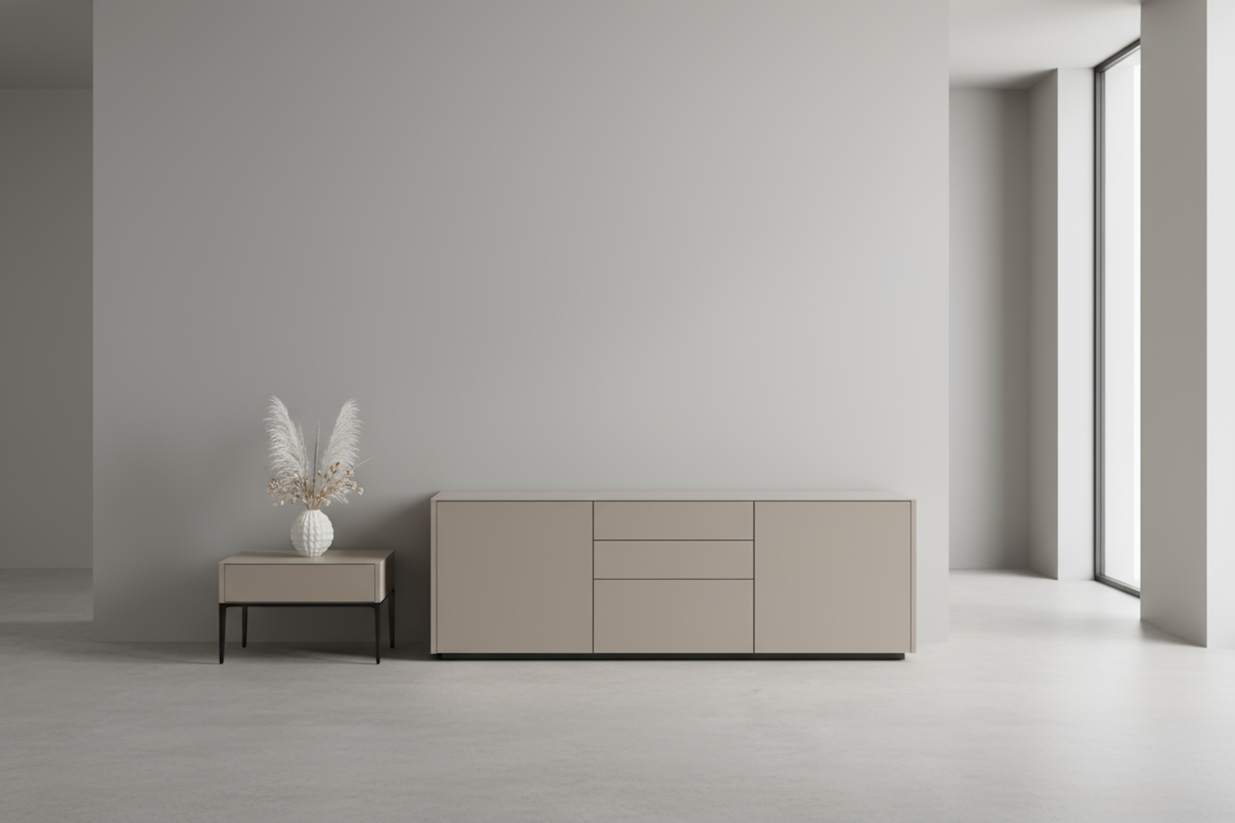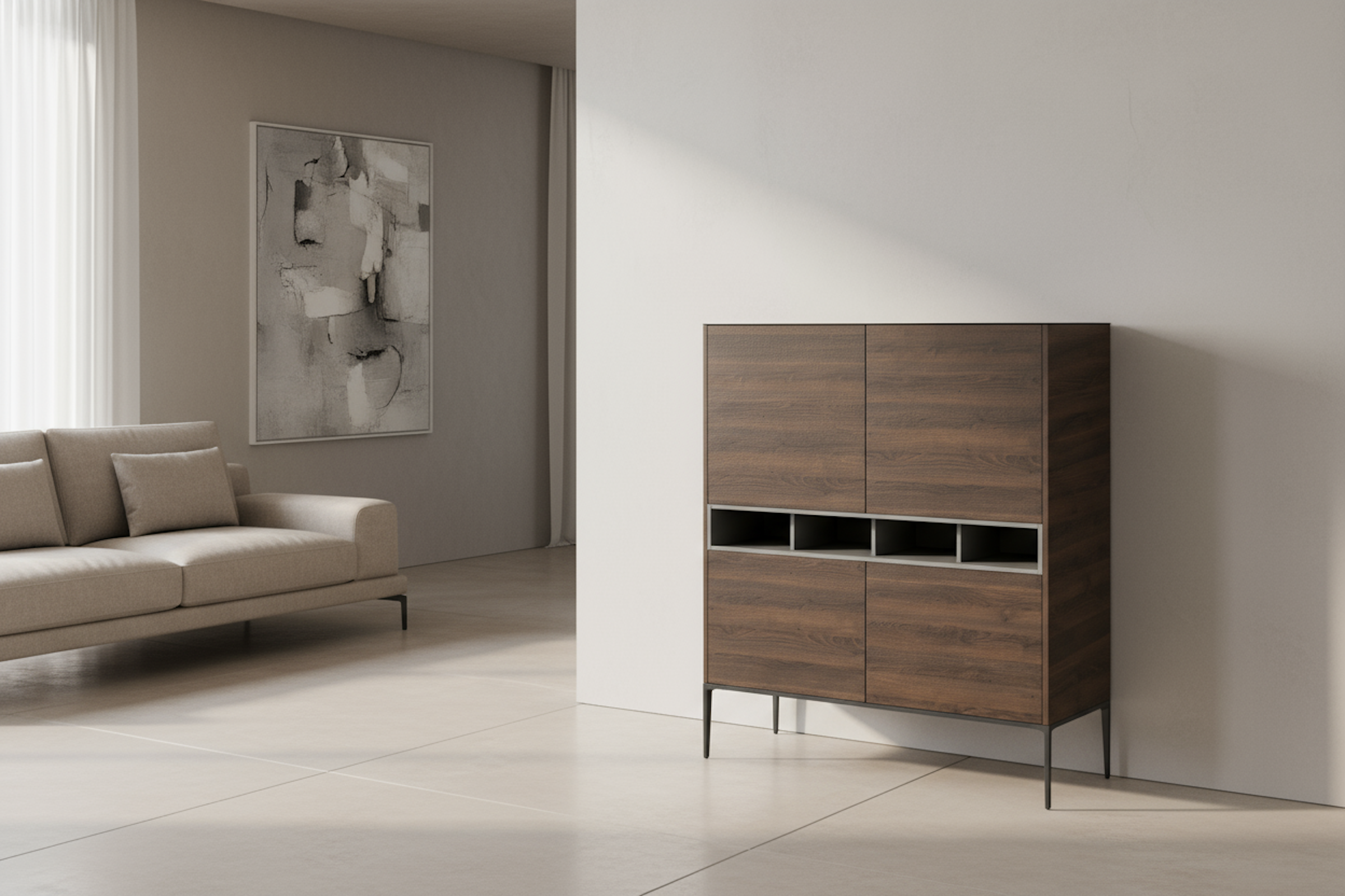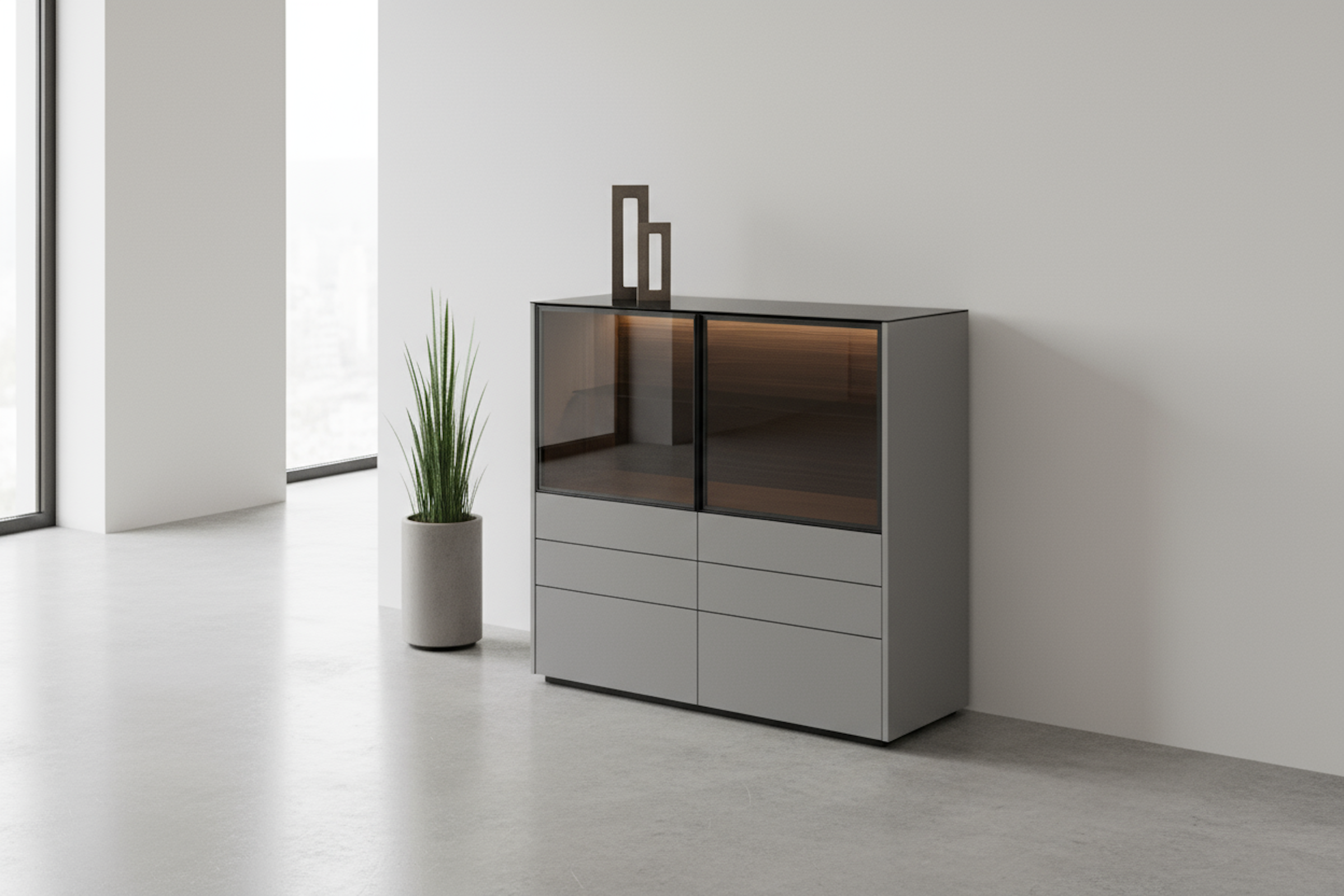 Откройте новые безграничные возможности для интерьера. Соберите комоды, напольные или подвесные тумбы под себя как конструктор: комбинируйте выдвижные ящики, распашные и откидные дверцы, открытые полки. Создайте свою уникальную подвесную композицию или поставьте на стильное металлическое основание либо цоколь. Выберите фасад: тёплый благородный шпон или современное покрытие. Фасады могут быть также выполнены из изящного алюминиевого профиля с безопасным стеклом. Можно дополнить конструкцию декоративными боковыми накладками, доступными в отделках фасадов и столешницей из матового или глянцевого стекла. Ваша идеальная модульная система хранения теперь доступна!