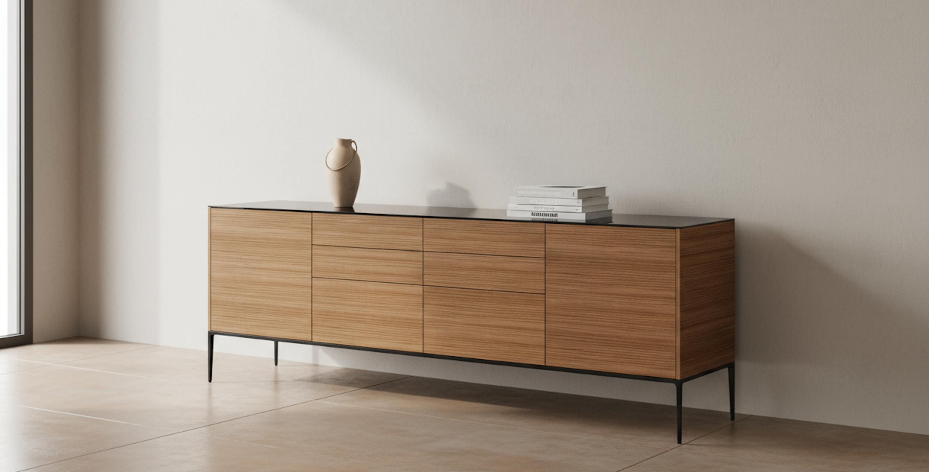 Откройте новые безграничные возможности для интерьера. Соберите комоды, напольные или подвесные тумбы под себя как конструктор: комбинируйте выдвижные ящики, распашные и откидные дверцы, открытые полки. Создайте свою уникальную подвесную композицию или поставьте на стильное металлическое основание либо цоколь. Выберите фасад: тёплый благородный шпон или современное покрытие. Фасады могут быть также выполнены из изящного алюминиевого профиля с безопасным стеклом. Можно дополнить конструкцию декоративными боковыми накладками, доступными в отделках фасадов и столешницей из матового или глянцевого стекла. Ваша идеальная модульная система хранения теперь доступна!