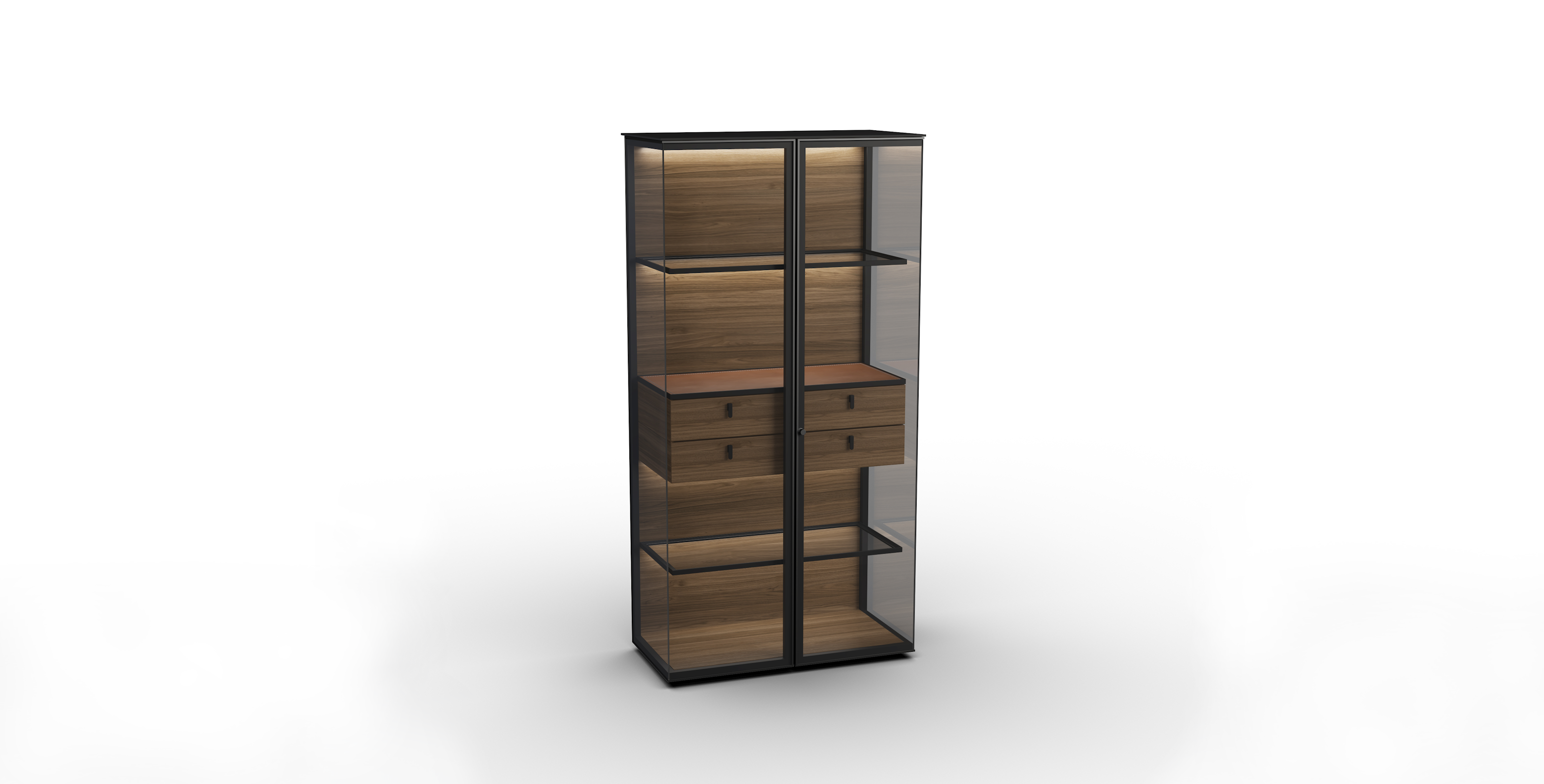 MATEO - это элегантные витрины из стекла и алюминия, создающие уникальную атмосферу современной роскоши в интерьере. Помимо функциональности они сочетают в себе строгость линий, совершенство форм и надежность элементов. Напольная витрина MATEO оснащена высококачественной европейской фурнитурой, а также имеет комфортную подсветку. Витрины в комплектации с ящиками для хранения и органайзером для аксессуаров соединяют в себе комфорт использования и великолепие материалов: ценные породы древесины и отделку из кожи.