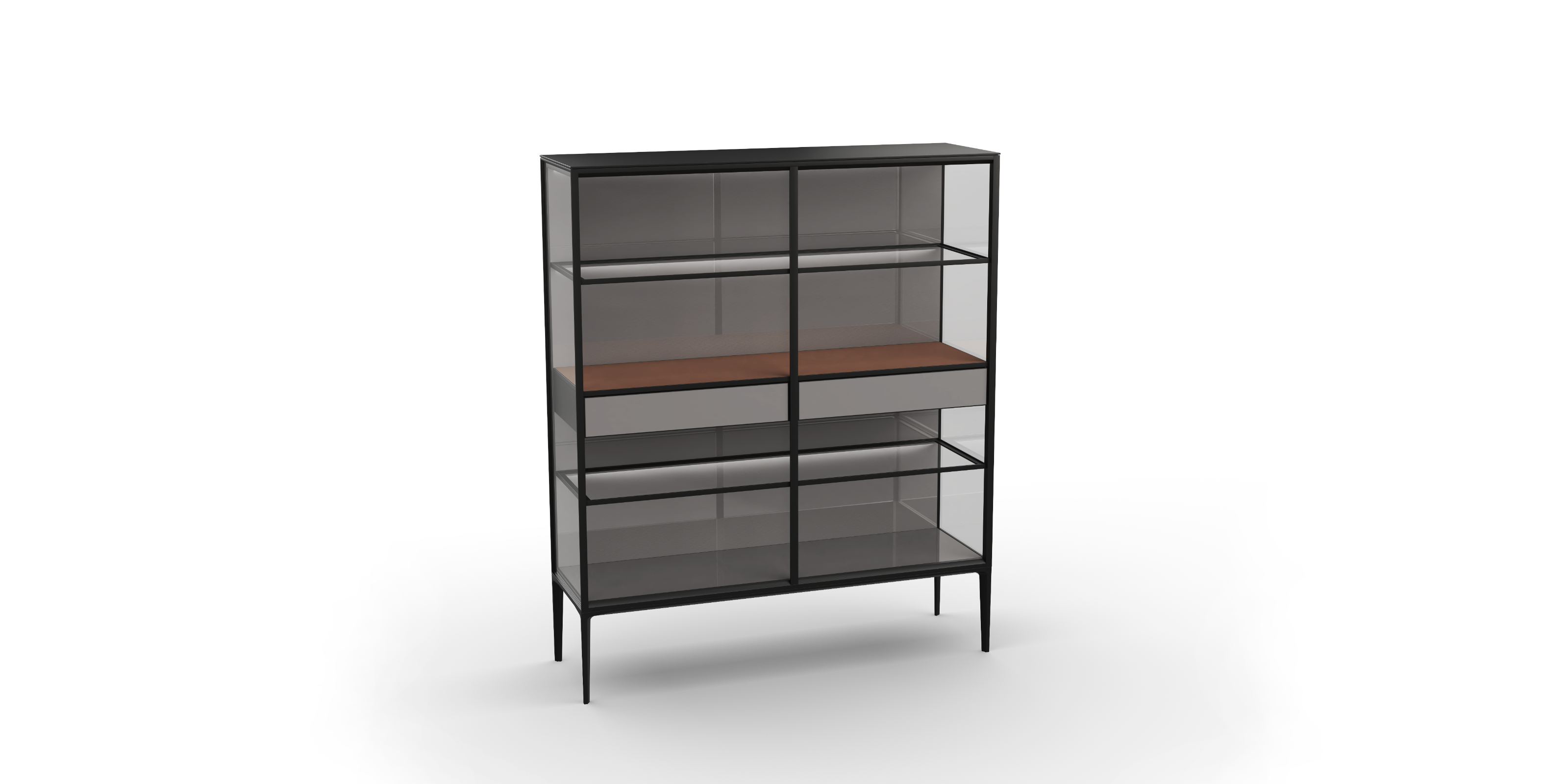Стеллажи MISTRAL — это современный взгляд на привычную мебель для гостинной. Дизайн коллекции продуман до мелочей — изящные алюминиевые конструкции с закаленным стеклом придают интерьеру изысканность и роскошь, не создавая ощущения загроможденного пространства. Утонченная и в то же время прочная конструкция из алюминия дополняется эксклюзивными дизайнерскими элементами, а встроенная светодиодная подсветка дарит мягкое, атмосферное освещение. Модель с ящиками оснащена системой плавного закрывания, а их дно отделано изысканной кожей. Центральная полка украшена кожей с элегантной прострочкой по периметру, подчёркивая безупречное качество и внимание к деталям.