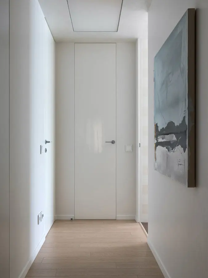 Практически в каждом проекте мы используем двери-невидимки на скрытом коробе. Считаем, что для минимализма неприемлемо использование дверей с наличниками, поэтому двери-невидимки становятся неотъемлемой частью этого стиля.