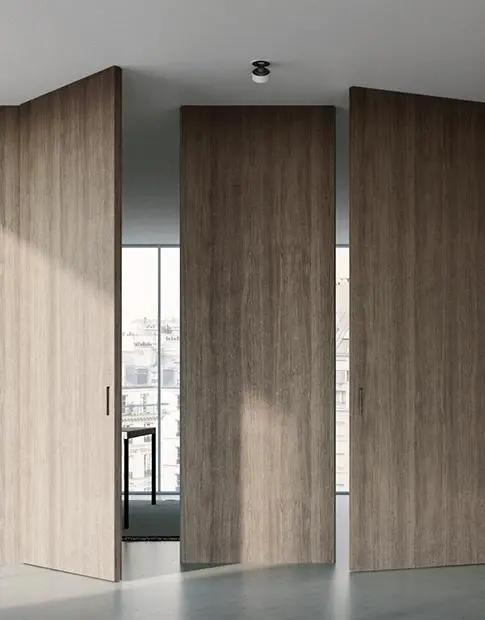Для коллекции Ala характерны двери, двери которых изготовлены из из деревянной панели толщиной (60 мм). Эта особенность в сочетании с возможностью создания дверей большой площади делает их фактически частью стены.