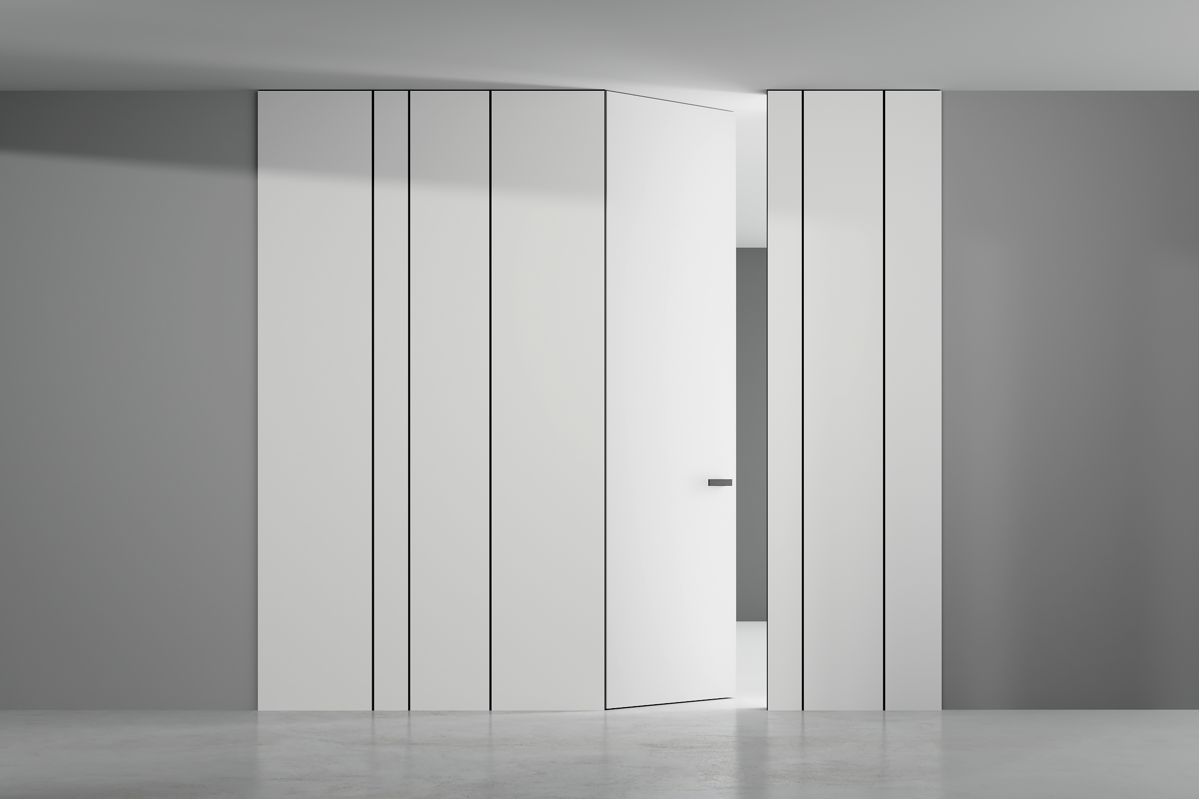 интеграции скрытых дверей в единой отделке со стеной;