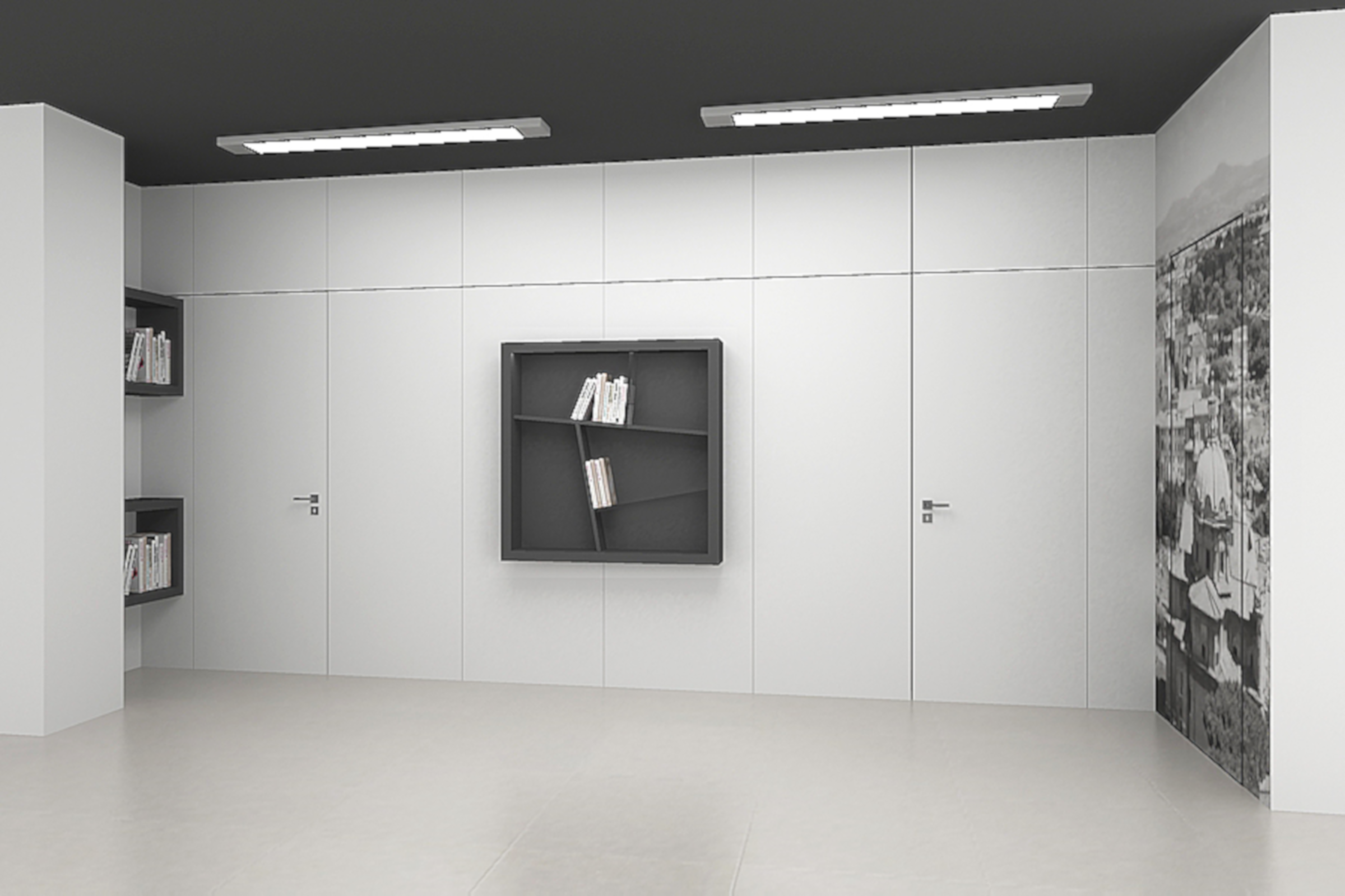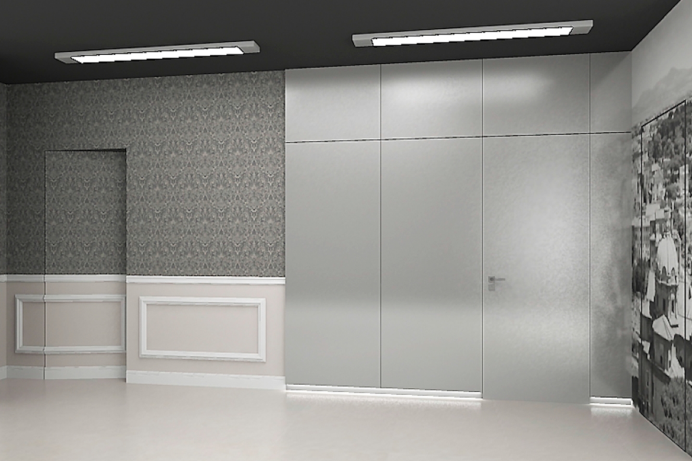 интеграции скрытых дверей в единой отделке со стеной;