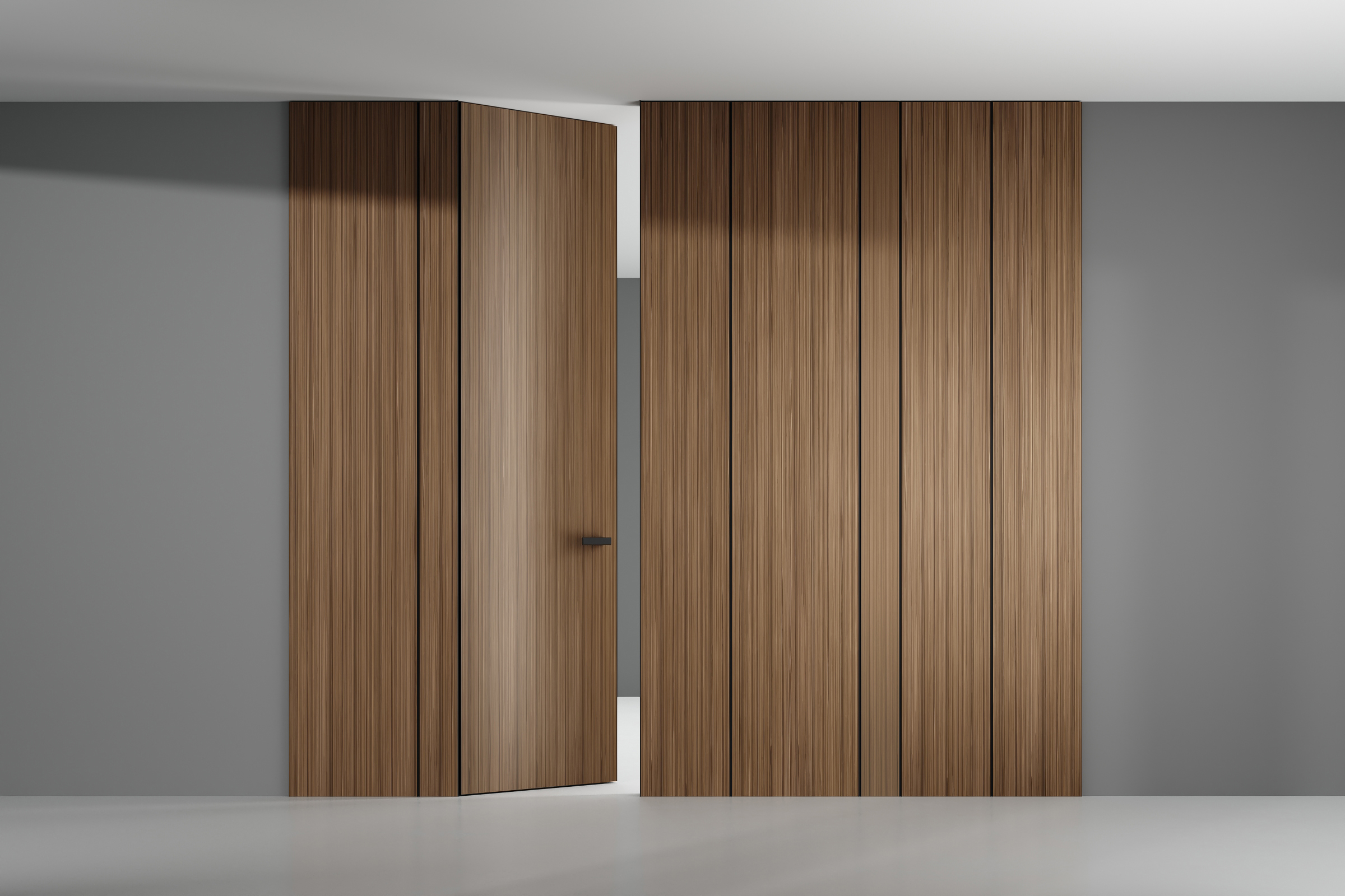 Стеновые панели COVER STOCK. Матовые эмали, натуральный шпон, алюминиевый молдинг.