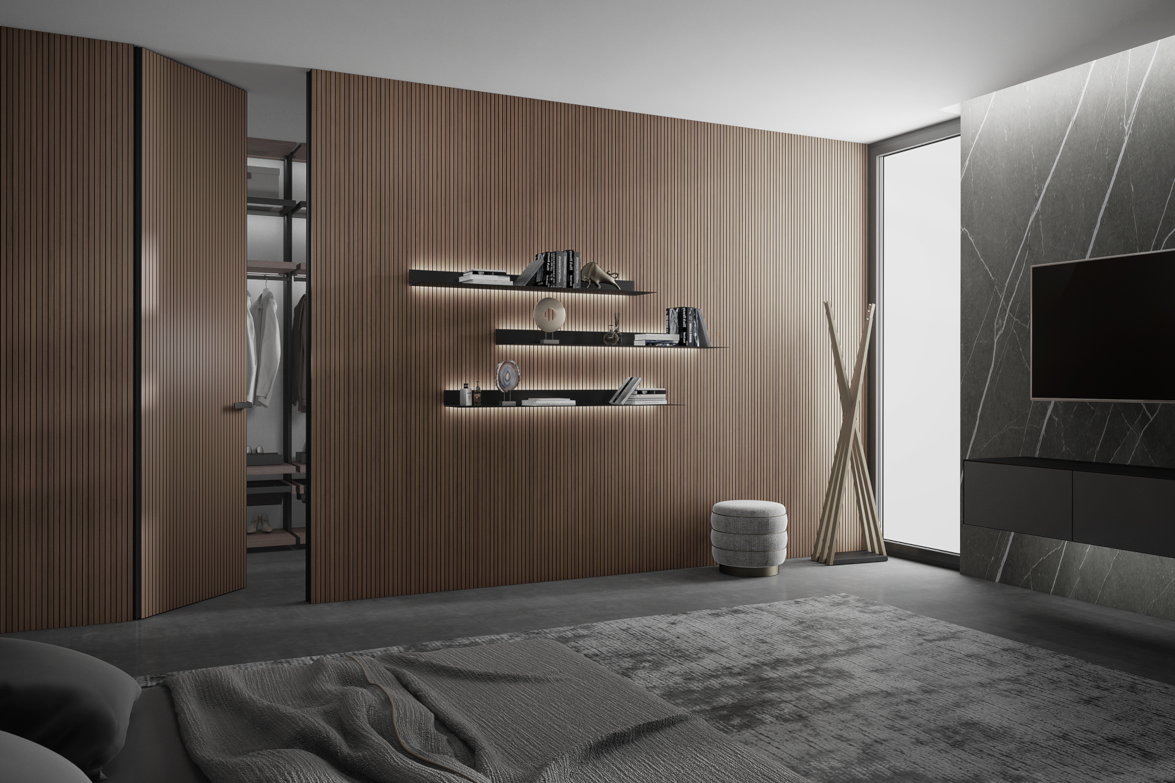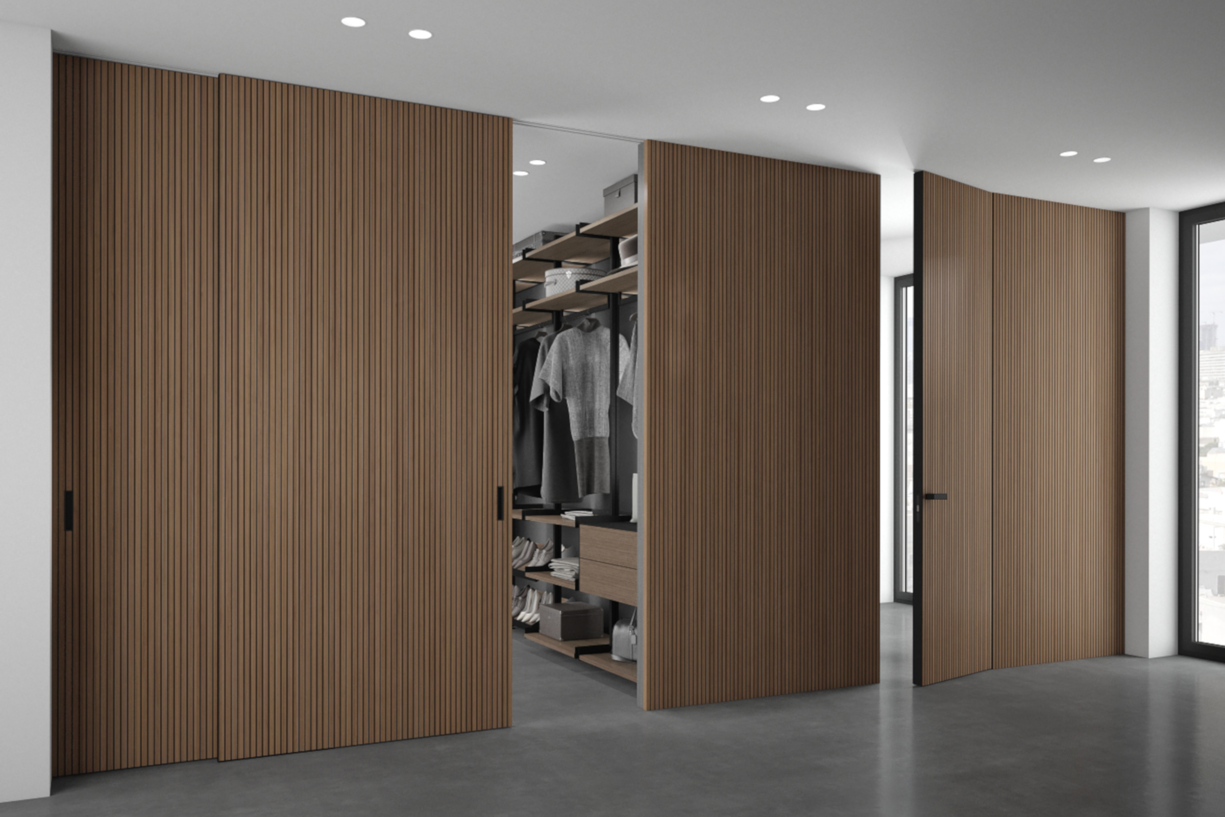 интеграции скрытых дверей в единой отделке со стеной;