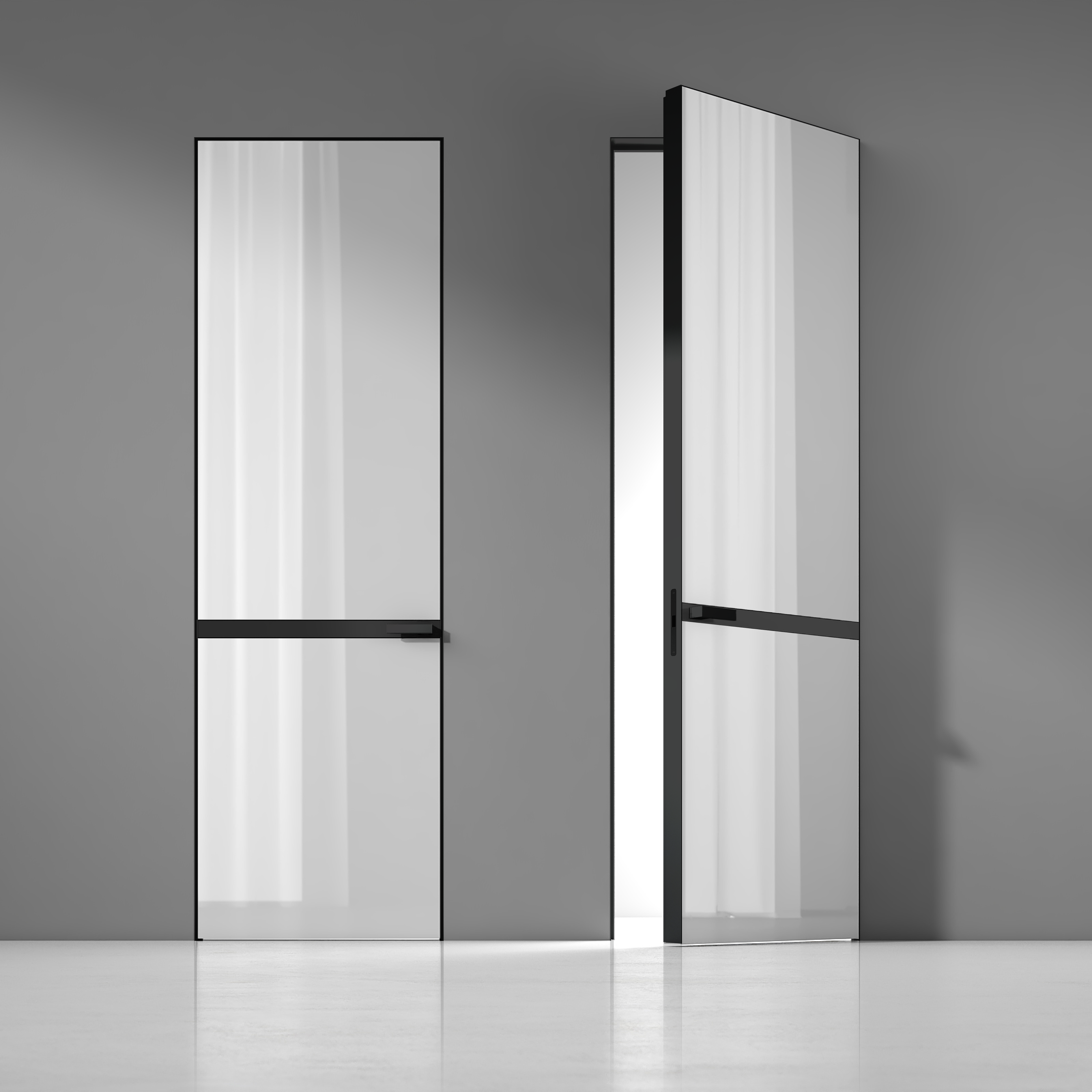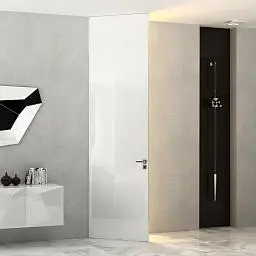 Цена за комплект: полотно толщиной 6 см в отделке глянцевая эмаль LG01 Bianco Gloss, условный размер 60/70/80/90x200/210 см, алюминиевая торцевая кромка в отделке AL09 Chrome Matt. Алюминиевый "скрытый" короб INVISIBLE под покраску, уплотнитель, скрытые петли, магнитный замок.