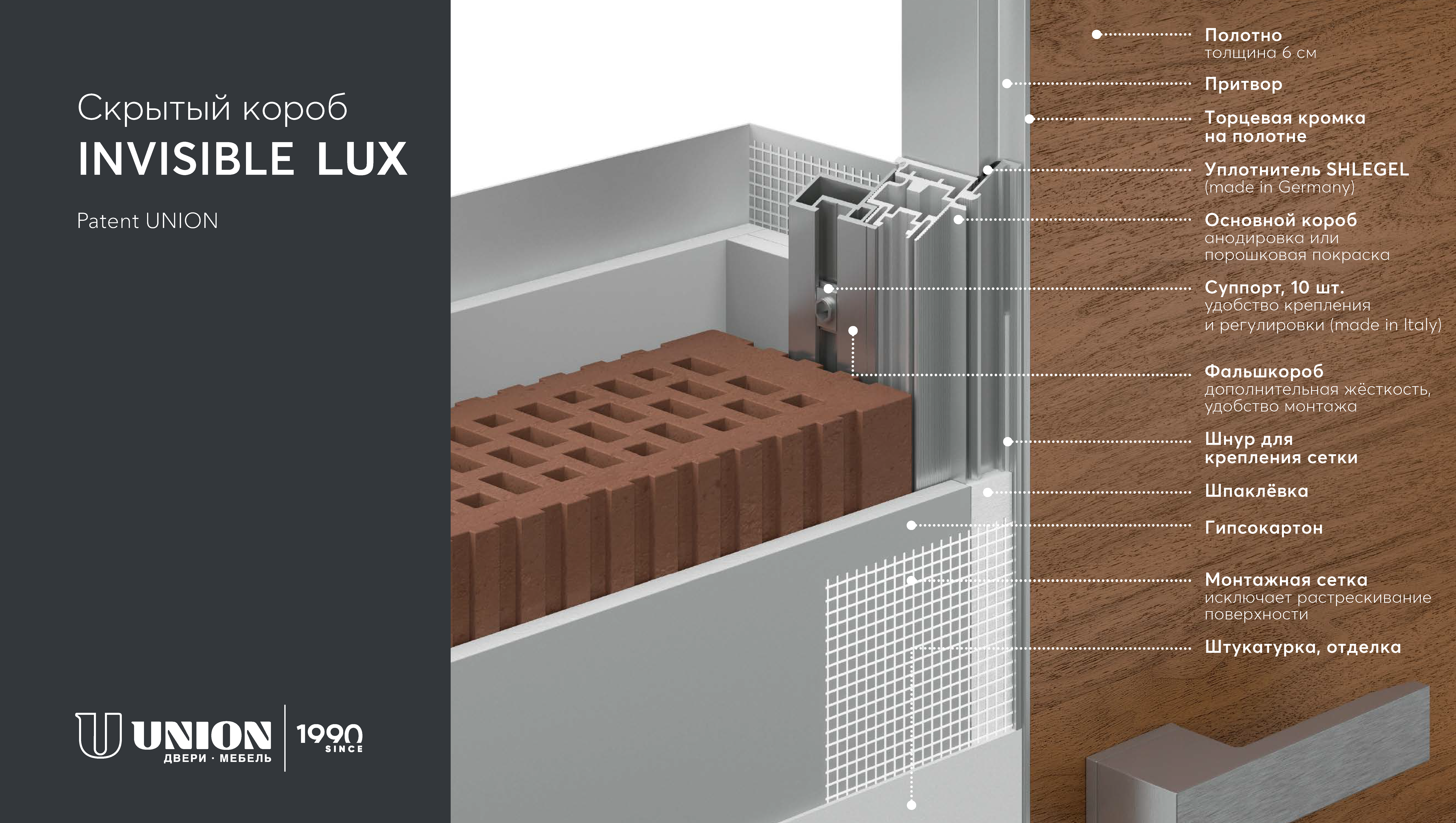 Цена за комплект: полотно в отделке матовая эмаль L01 Bianco, условный размер 60/70/80/90x200/210 см, алюминиевый "скрытый" короб INVISIBLE под покраску, уплотнитель, скрытые петли, магнитный замок.