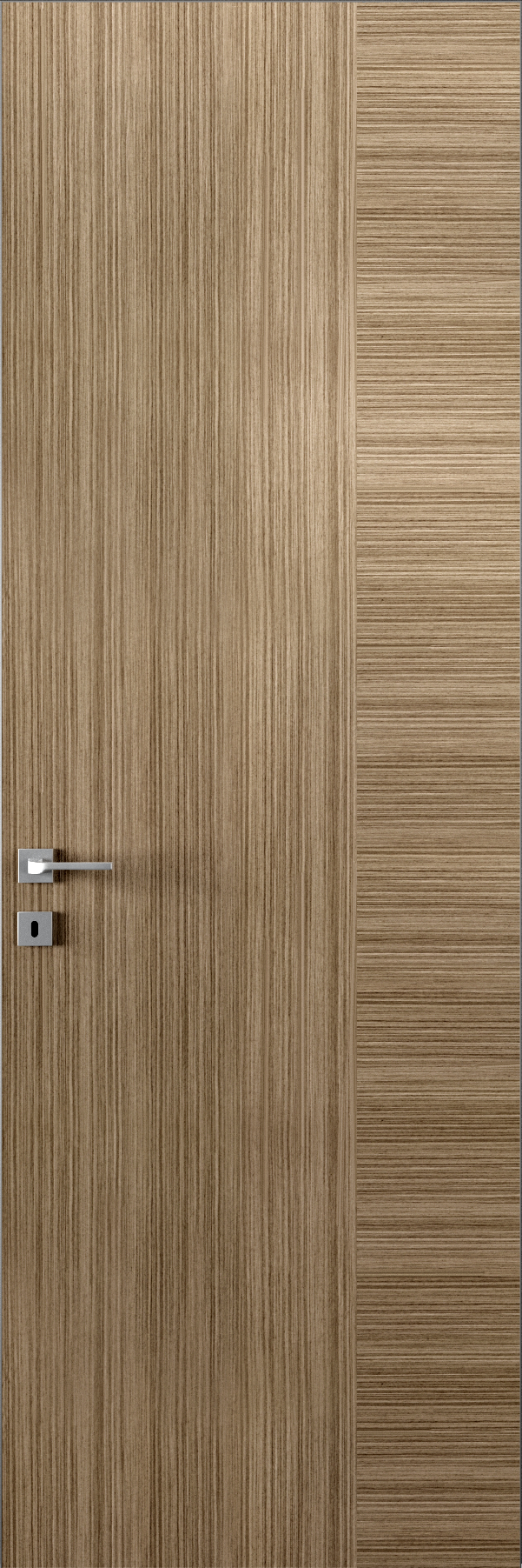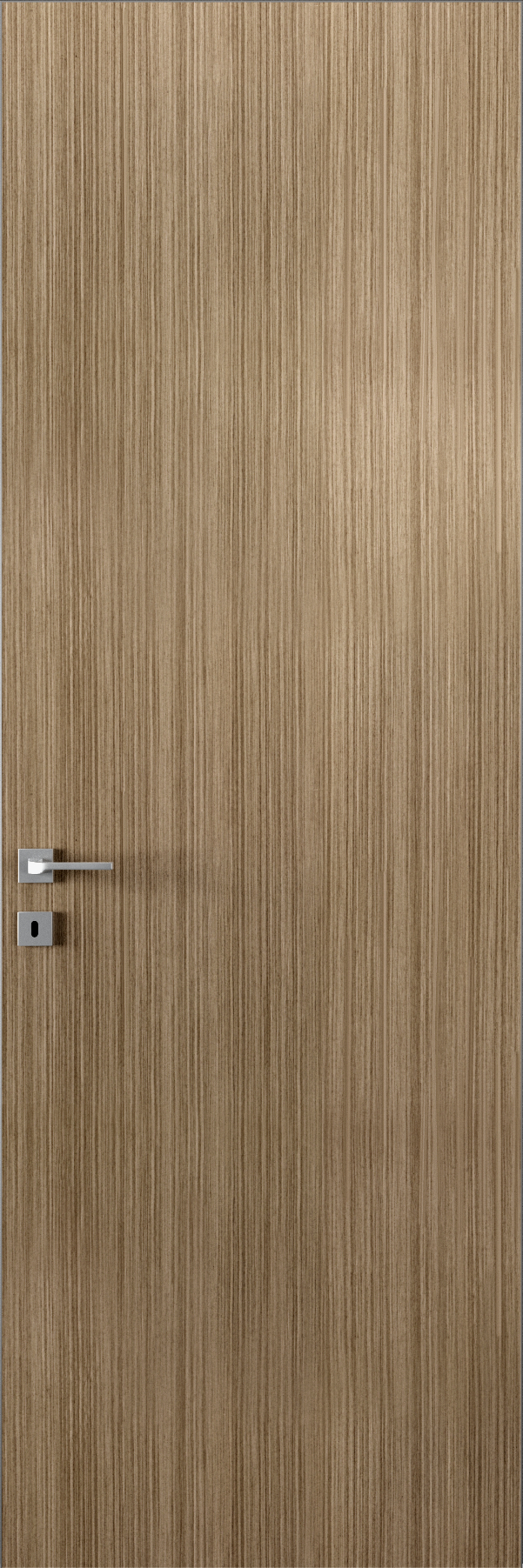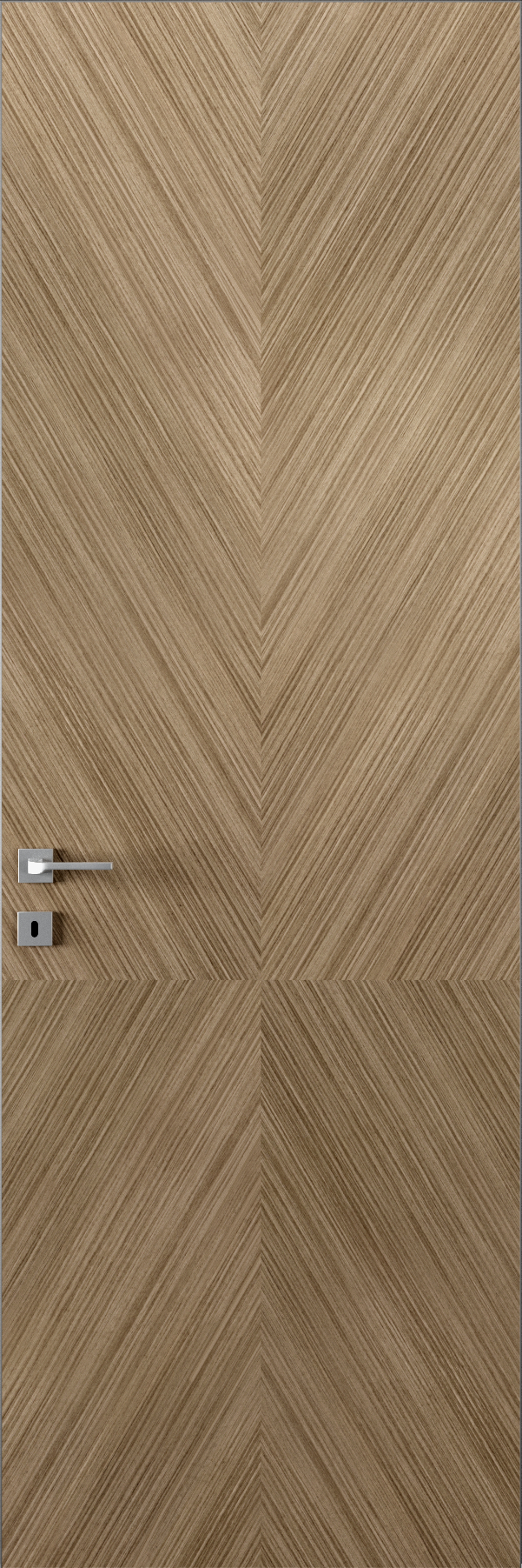 Цена за комплект: полотно толщиной 60 мм, модель Vento (Velino) в отделке натурального шпона V20 Noce Americano, условный размер 60/70/80/90x200/210 см, алюминиевая торцевая кромка на полотне и короб-моноблок PLANAR с наличниками в отделке - анодировка AL09 Chrome Matt (наличники со стороны открывания), уплотнитель, скрытые петли, магнитный замок.