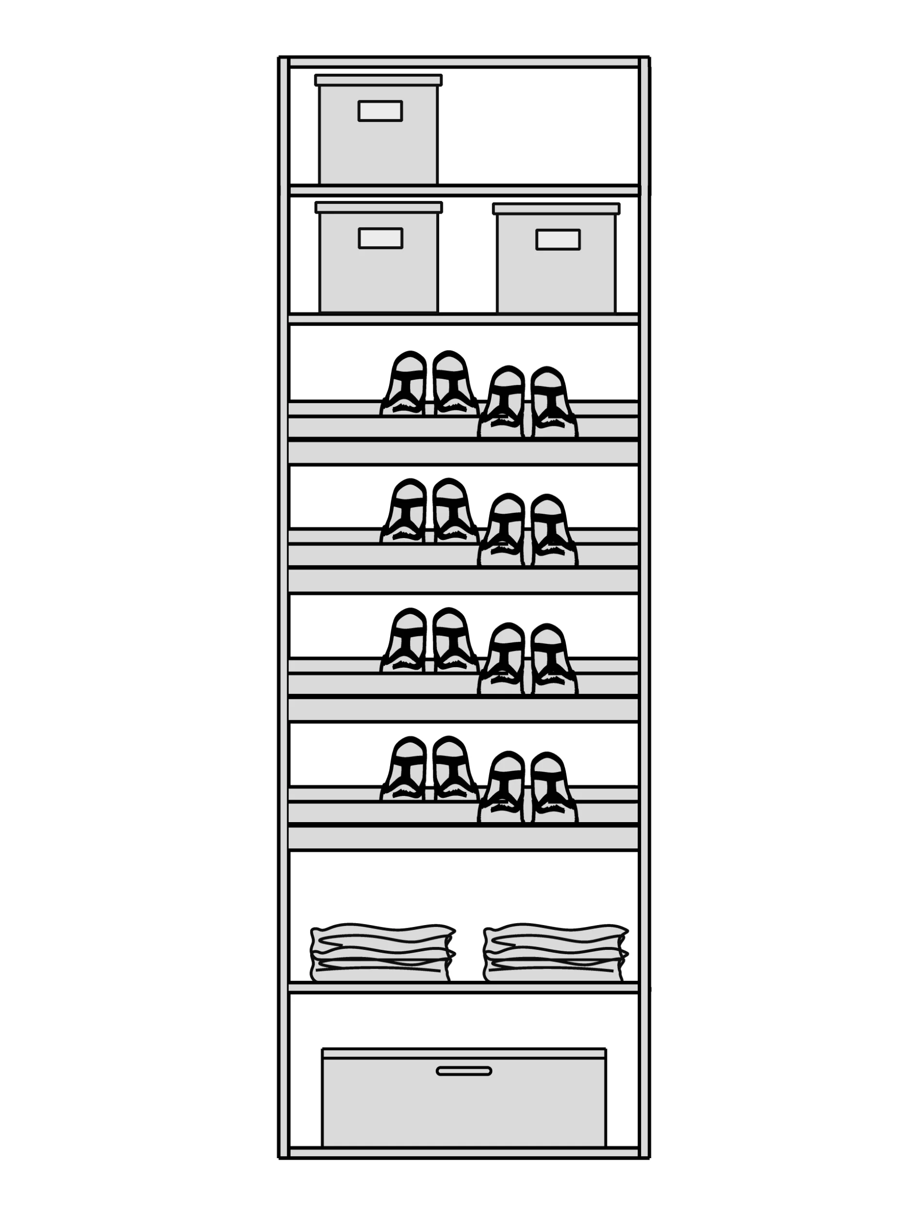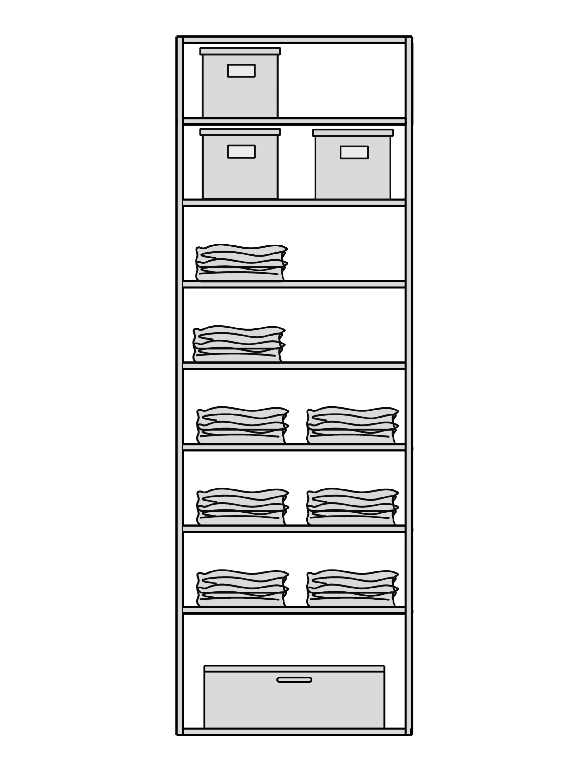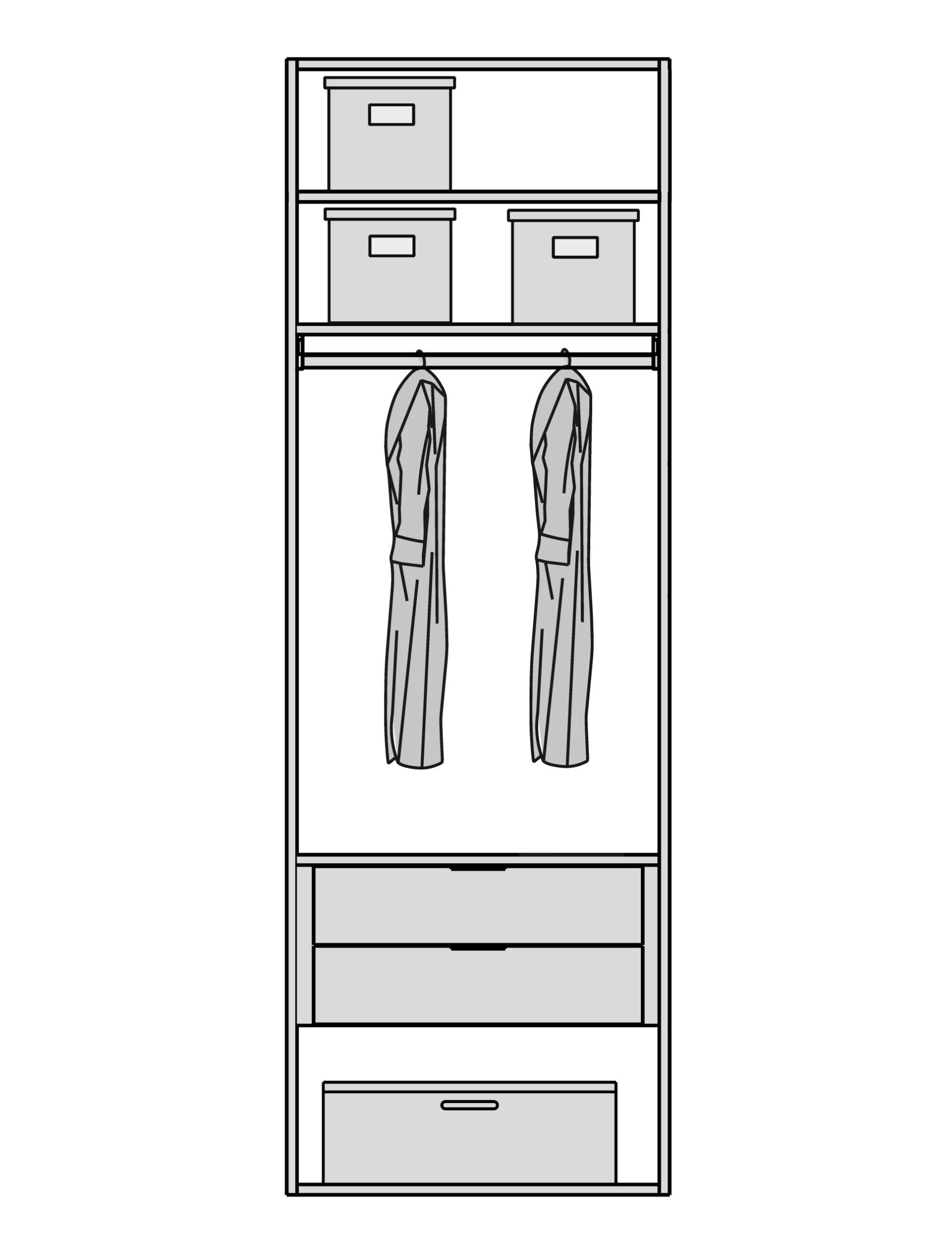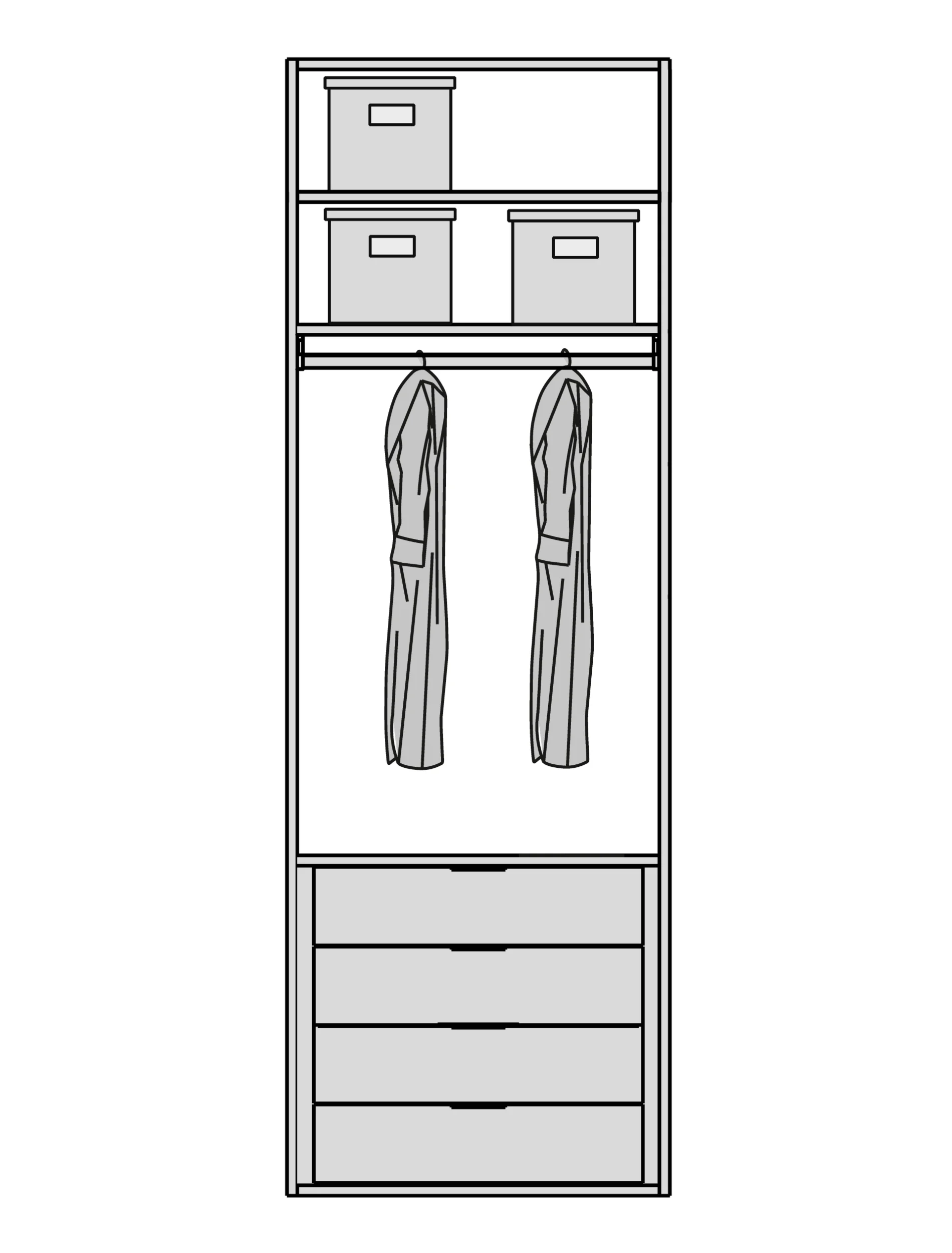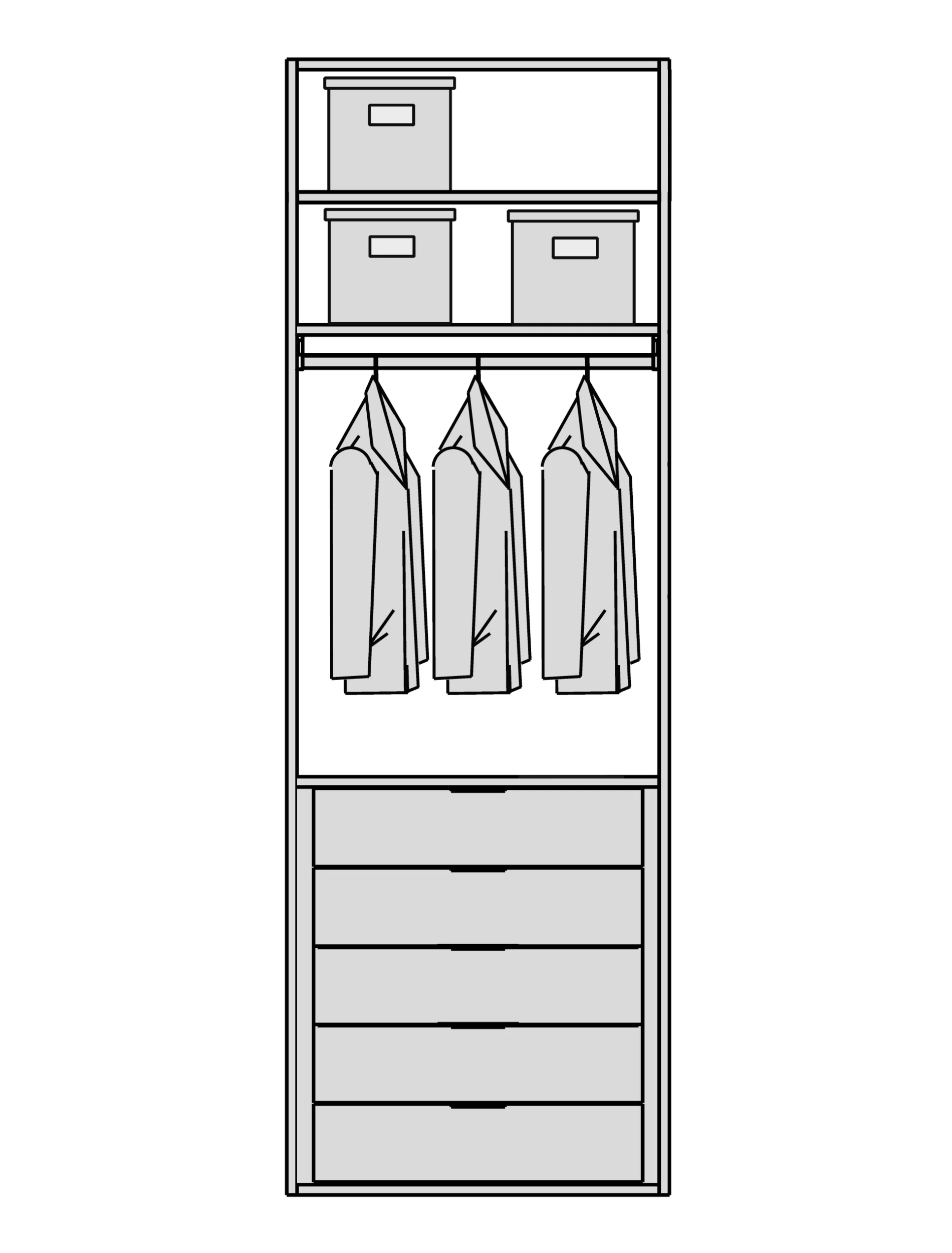 Мы снимаем ограничения с ваших идей. Гардеробная подстраивается под высоту вашего помещения при полезной глубине 56 см. Возможно спроектировать любую конфигурацию: от строгой прямой до монументальной П-образной формы, с установкой в нишу или к стене. - Итальянский дизайн и безупречная точность