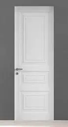 GRAND-60, GR01, LACCATO / INVISIBLE.Цена за комплект: полотно толщиной 6 см, модель "GR01" в отделке матовая эмаль L01 Bianco, условный размер 60/70/80x200/210 см, алюминиевый "скрытый" короб INVISIBLE под покраску, уплотнитель, скрытые петли, магнитный замок.
