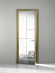 LAGO-60, Lira, MIRROR / DECO.Цена за комплект: полотно толщиной 6 см, модель Lira с зеркалом M01 Mirror с двух сторон, условный размер 60/70/80/90x200/210 см, алюминиевый короб-моноблок DECO с фигурными наличниками и алюминиевый каркас полотна в отделке - анодировка AL09 Chrome Matt (наличники со стороны открывания), уплотнитель, скрытые петли, магнитный замок.