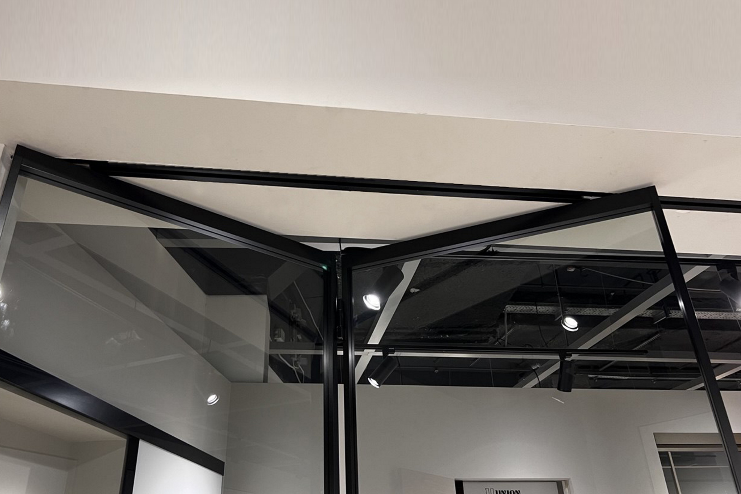 - Раздвижная система в отделке профиля.