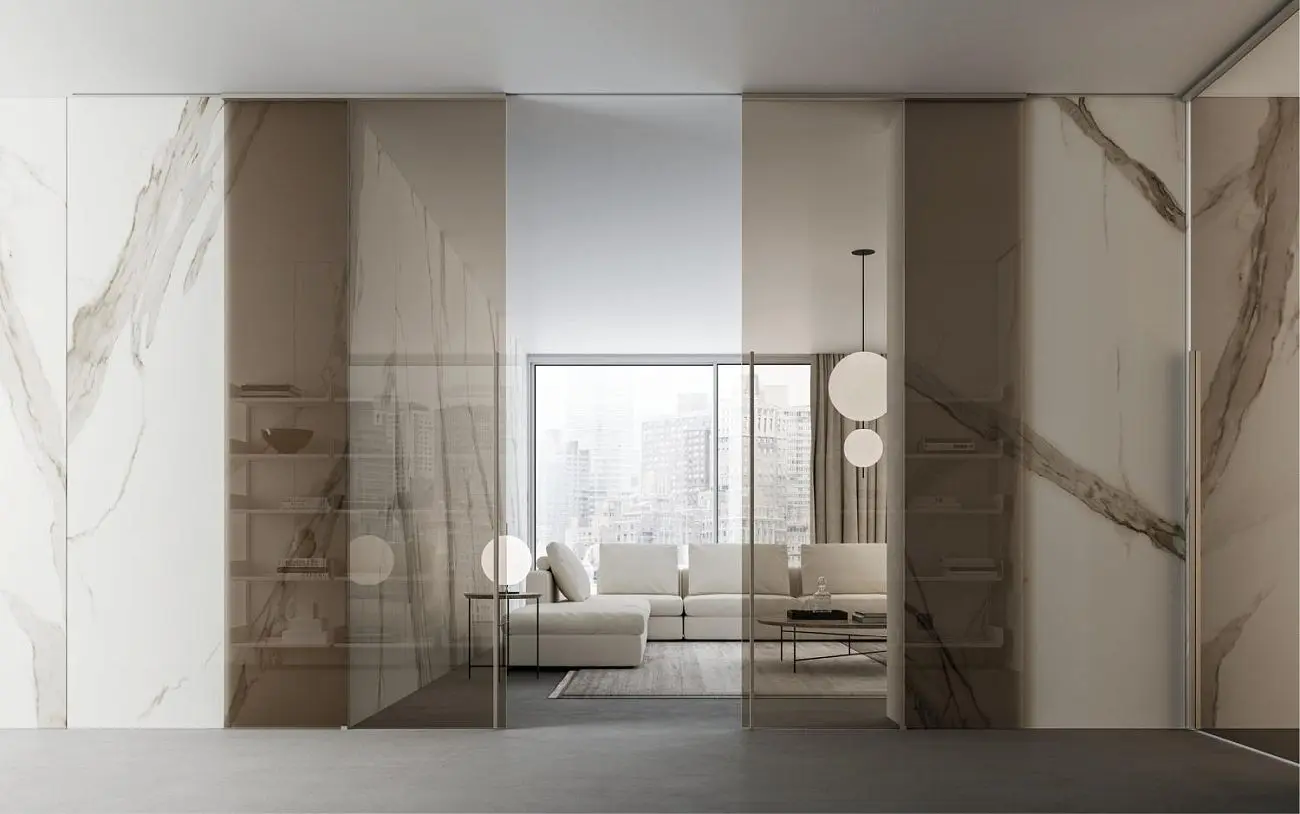 Light - это «невидимая» коллекция. Лист стекла, который благодаря инновационной системе скользит в архитектурном пространстве. Устраняя визуальное воздействие рамы, уменьшенное только до верхнего поперечного профиля, Light гарантирует максимальную прозрачность, эстетическую чистоту и яркость.