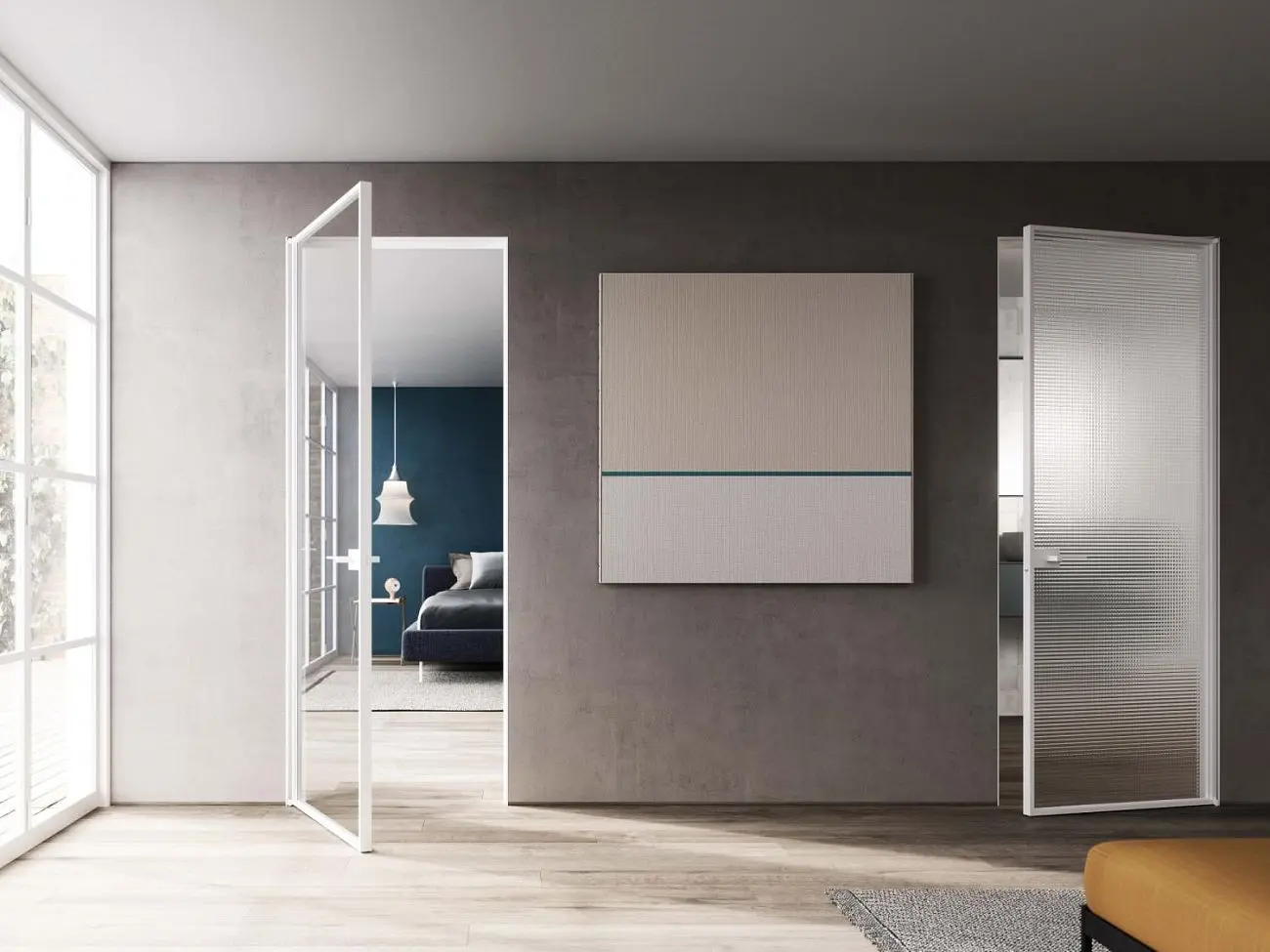 Коллекция Mitica отличается строгой эстетикой, которую ей придает алюминиевый профиль, в котором по центру находится стекло, и геометрия самой рамы полотна, которая состоит из стоек 18 × 36 мм и поперечин 36 × 36 мм. Благодаря высокой технологии производства и историчности этой коллекции, двери Mitica доступны во всех типах открывания, а именно: