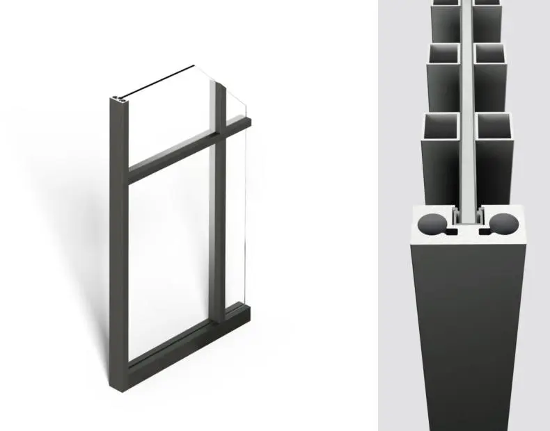 Коллекция Officina воплощает в себе узнаваемую эстетику индустриального стиля благодаря использованию алюминиевых перемычек, наносимых в виде решётчатого переплетения на стеклянное полотно с учётом пожеланий заказчика.