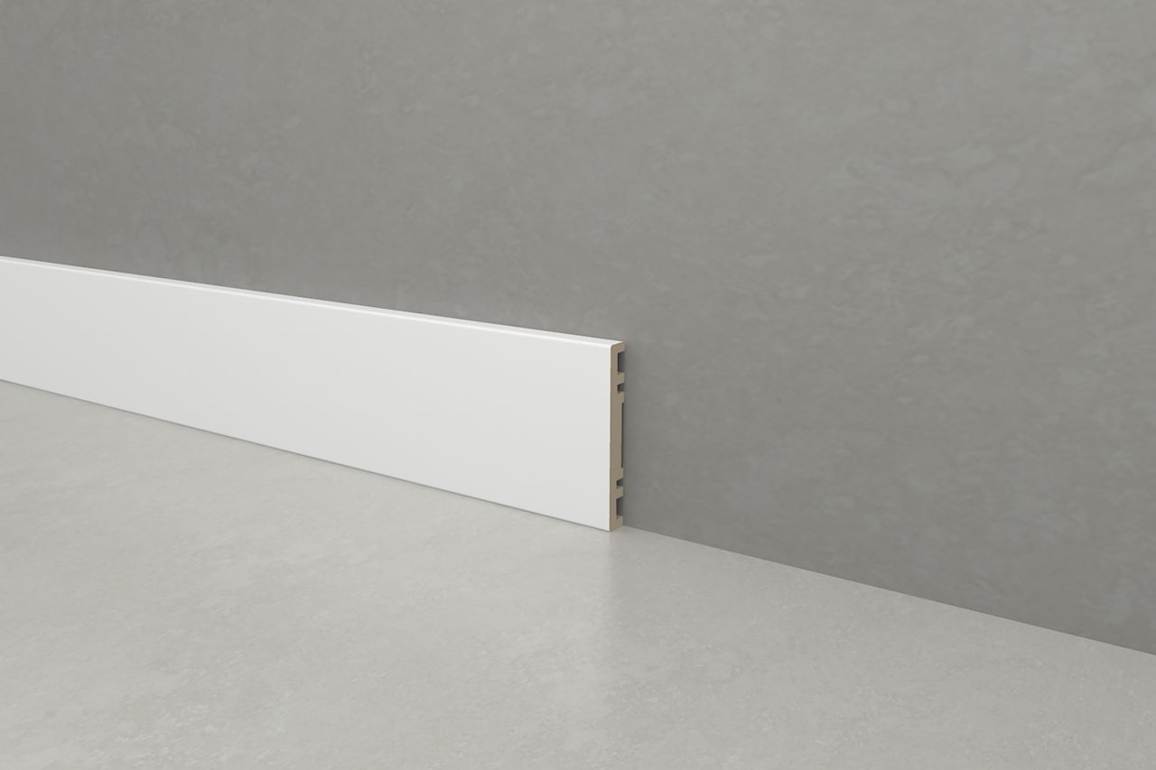 Цена за один погонный метр плинтуса NP9 в отделке: матовая эмаль в белом цвете L01 Bianco. Материалы и отделки