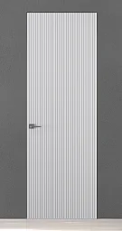 Цена за комплект: полотно толщиной 6 см, модель "TR06" в отделке матовая эмаль L01 Bianco, условный размер 60/70/80x190/200/210 см, алюминиевый "скрытый" короб INVISIBLE под покраску, уплотнитель, скрытые петли, магнитный замок.