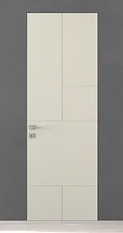 TREND-60, TR06, LACCATO / INVISIBLE.Цена за комплект: полотно толщиной 6 см, модель "TR06" в отделке матовая эмаль L01 Bianco, условный размер 60/70/80x190/200/210 см, алюминиевый "скрытый" короб INVISIBLE под покраску, уплотнитель, скрытые петли, магнитный замок.