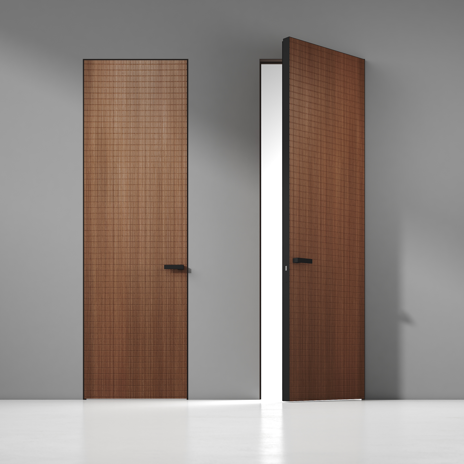 Дверь на скрытом коробе. Отделка Tartan – рельефный, структурный рисунок на натуральном шпоне
