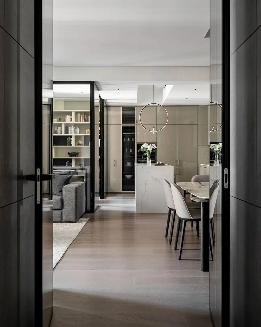 - Чтобы сохранить свет в довольно темной квартире, архитектор выбрала также стеклянные прозрачные двери, из той же коллекции, что и перегородки, а для сохранения звукоизоляционных свойств — двойное стекло.