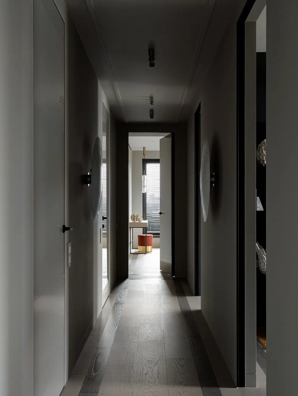 В результате получился интерьер, где двери выполняют не только функциональную, но и архитектурную задачу, поддерживая чистый и современный образ пространства.
